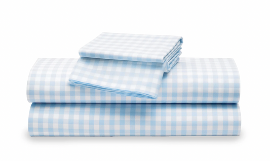 Luxe Premium Cotton Light Blue Gingham Bed Sheets