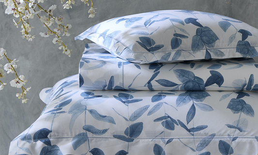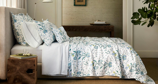 Pomegranate Quilted Linen Shams - Porcelain Blue