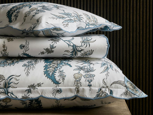 Pomegranate Quilted Linen Shams - Porcelain Blue