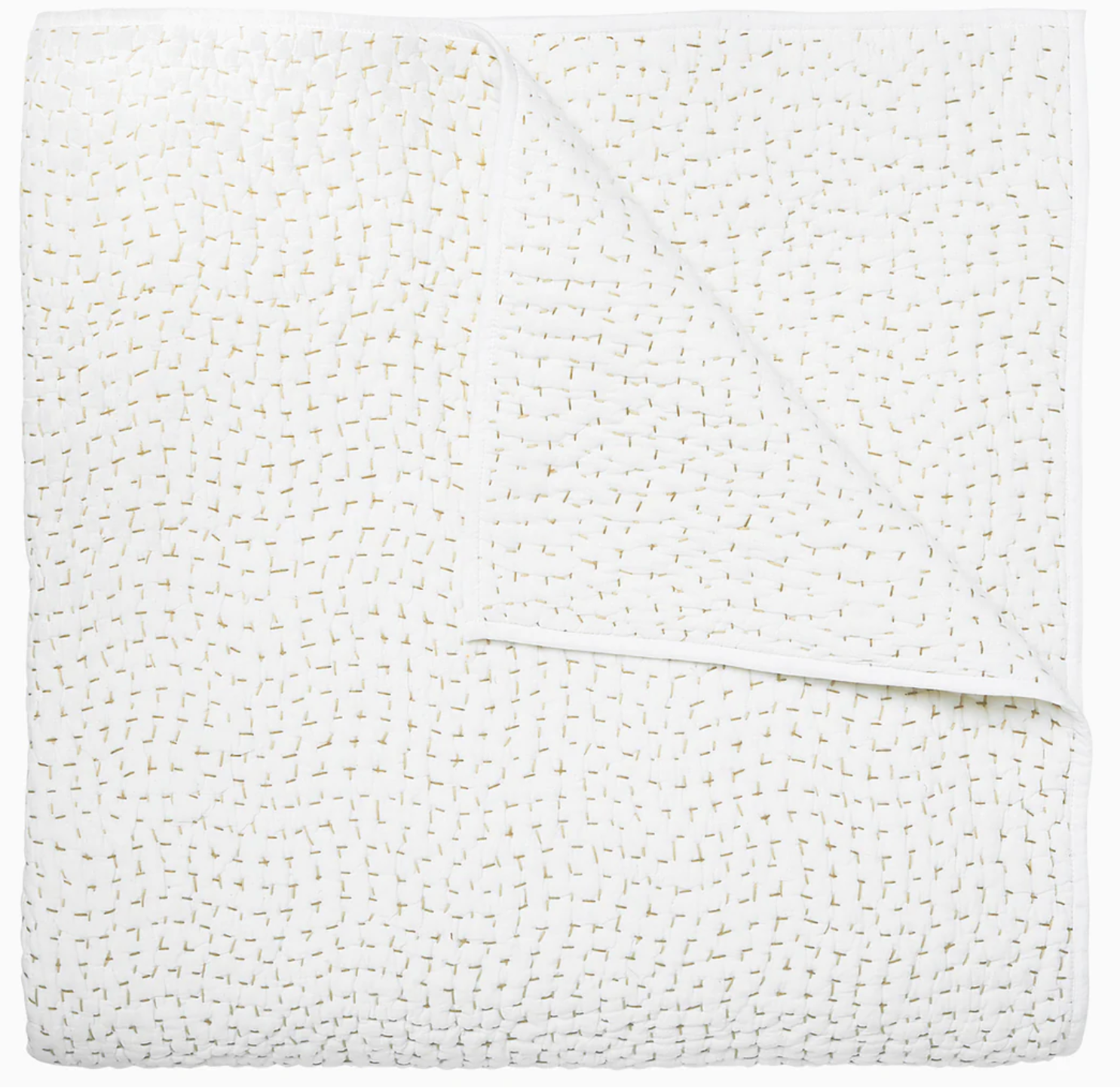 These super fine cotton voile coverlets are patiently & meticulously stitched by hand. Crafted in thin layers of organic cotton voile and lined with cotton batting, only the super fine fabric brushes against your skin, not the stitches themselves. These coverlets are so light, yet so warm – ideal for year round sleeping. All quilts are reversible. Coverlets have hand stitching on both sides